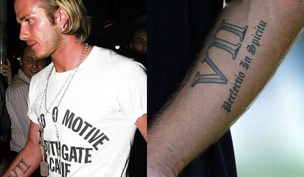 Через рік татуювання на руках Бекхема поповнилися новими фразами латинською мовою. Так на правій руці з'явилося вислів «Perfectio In Spiritu» («Духовне вдосконалення»), а на лівій «Ut Amem Et Foveam» («Люблю і плекаю»).