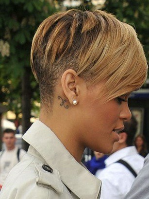 18.03.2014 22:031. Найперша татуювання Ріанни розташована за правим вухом. Татуювання є астрологічний знак (риби на китайському). Цю татуювання Ріанна зробила на своє вісімнадцятирічні в Китаї, в 2006 році.