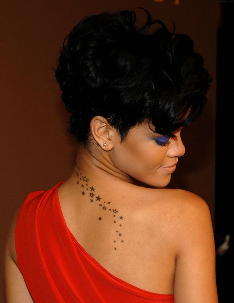 Але незабаром, 7 квітня 2008, у Ріанни від спини і до самої потилиці продовжилася прекрасна доріжка з зірочок.