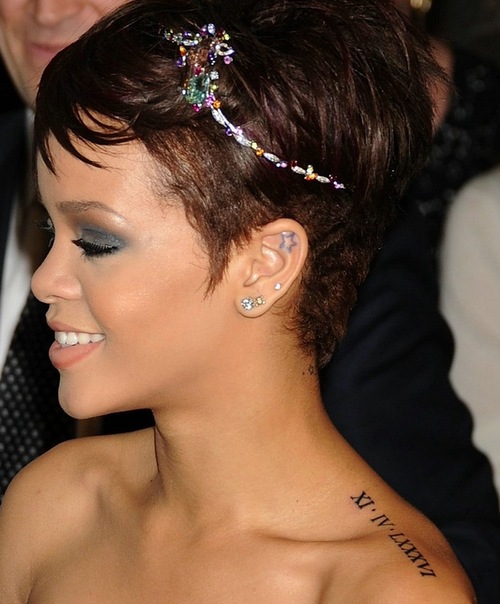 8. Наступна тату - це дата римськими цифрами, витатуював на плечі. Татуювання XI.IV.LXXXVI означає 11.4.1986, дату народження кращої подруги Ріанни, Мелісси Форд