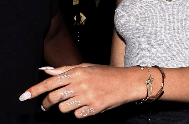 15. 25 січня 2012 Ріанна зробила татуювання на фалангах пальців, у вигляді напису «Thug Life» (рос. «життя головоріза»), виконану білими чорнилами - на згадку про репера Тупака (2Pac Amaru Shakur), загиблих 13 вересня 1996 року. Втім, це не завадило їй звести тату буквально на днях.